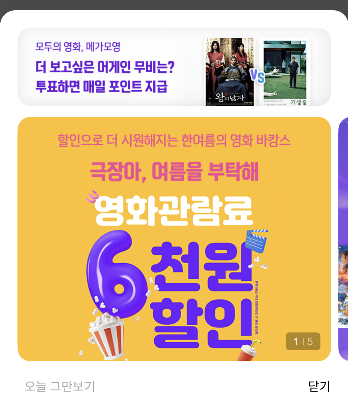 메가박스 앱에서 쿠폰을 성공적으로 받을 수 있었던 핵심은 바로 메인 화면의 배너를 활용한 것이었어요.