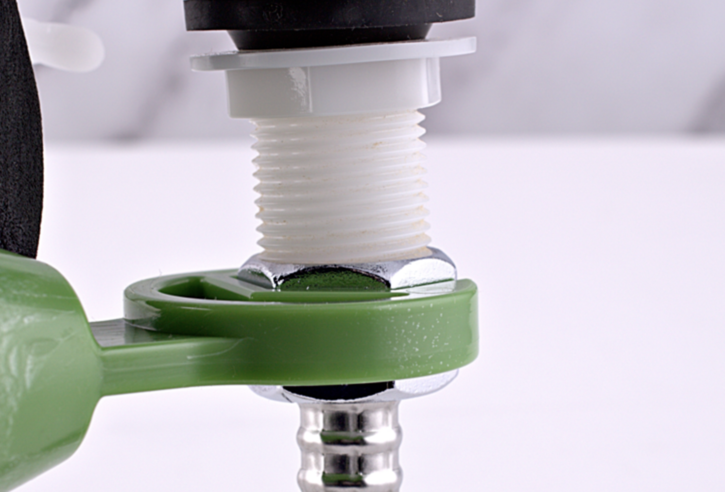 수도 호스를 고정하는 플라스틱 너트가 있다면 손으로 돌려서 분리합니다. 플라스틱이 아닌 금속 재질이라면 적당한 크기의 렌치나 플라이어가 필요할 수 있습니다.