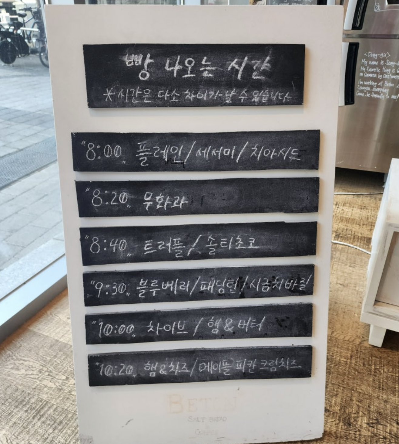오후 2시 30분경 방문했을 때는 대부분의 메뉴가 여유롭게 준비되어 있었습니다. 특히 인기 메뉴인 트러플 소금빵도 추가 생산되어 나오는 경우가 있으니, 직원분께 문의해보시는 것도 좋은 방법이에요.