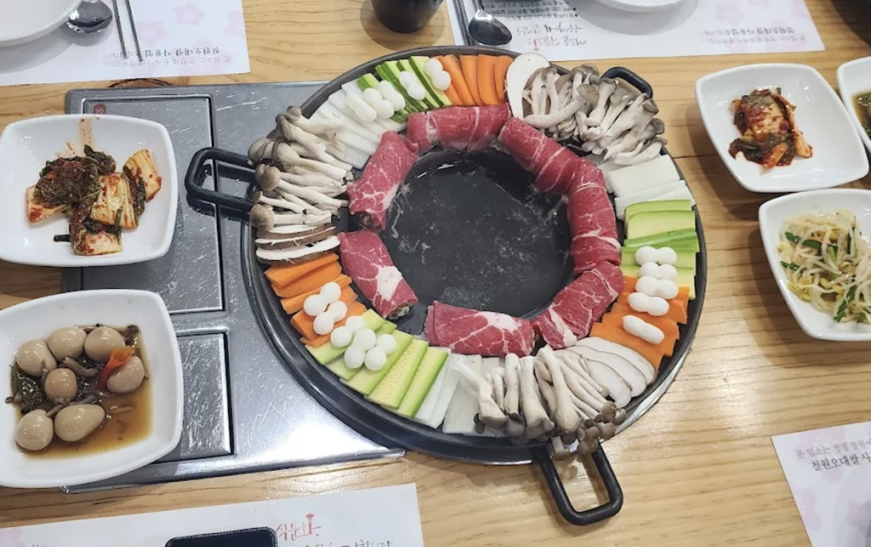 군용 모자 모양의 특수 제작된 냄비에 최상급 한우와 각종 신선한 채소들을 넣어 샤브샤브 방식으로 즐기는 이 요리는 맛뿐만 아니라 시각적 재미까지 선사합니다. 소고기는 하나하나 정성스럽게 말아서 제공되며, 채소와 함께 쌈을 싸서 먹는 재미가 있어 가족 단위 방문객들에게 특히 인기가 높습니다.